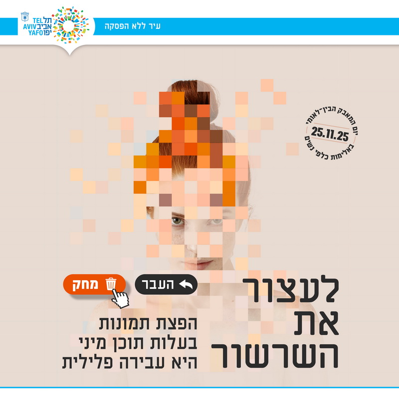 לרגל היום הבין-לאומי למאבק באלימות כלפי נשים שחל ב-25 בנובמבר, עיריית תל אביב-יפו מובילה מהלך עירוני רחב היקף תחת הכותרת "לעצור את השרשור", שמטרתו להיאבק באלימות מינית במרחב הדיגיטלי, תופעה הולכת ומתרחבת שמותירה פגיעות עמוקות בנפגעות ובנפגעים. המהלך כולל קמפיין עירוני נרחב, לצד שורת פעילויות חינוכיות, קהילתיות וציבוריות שיתקיימו ברחבי העיר.